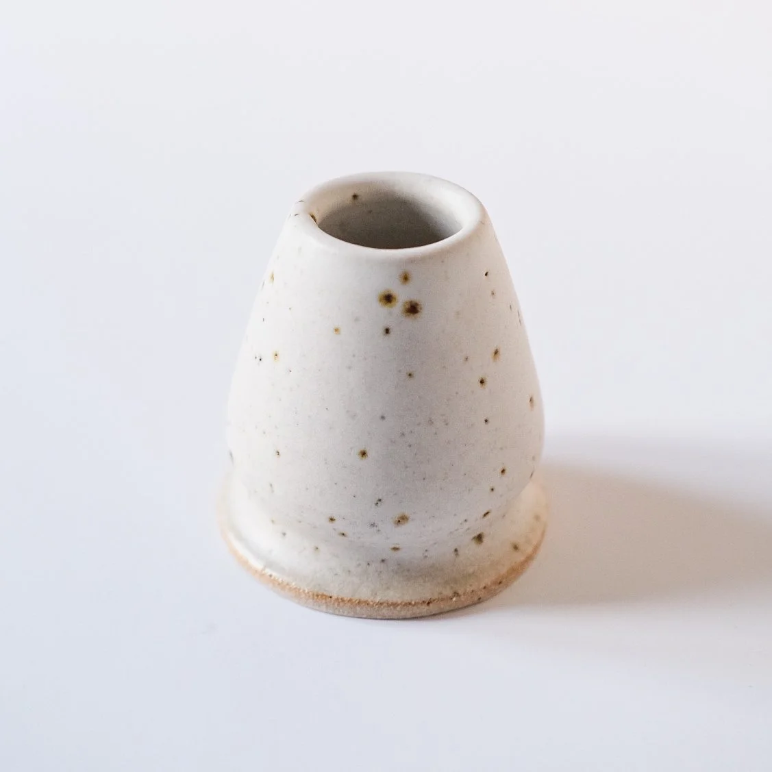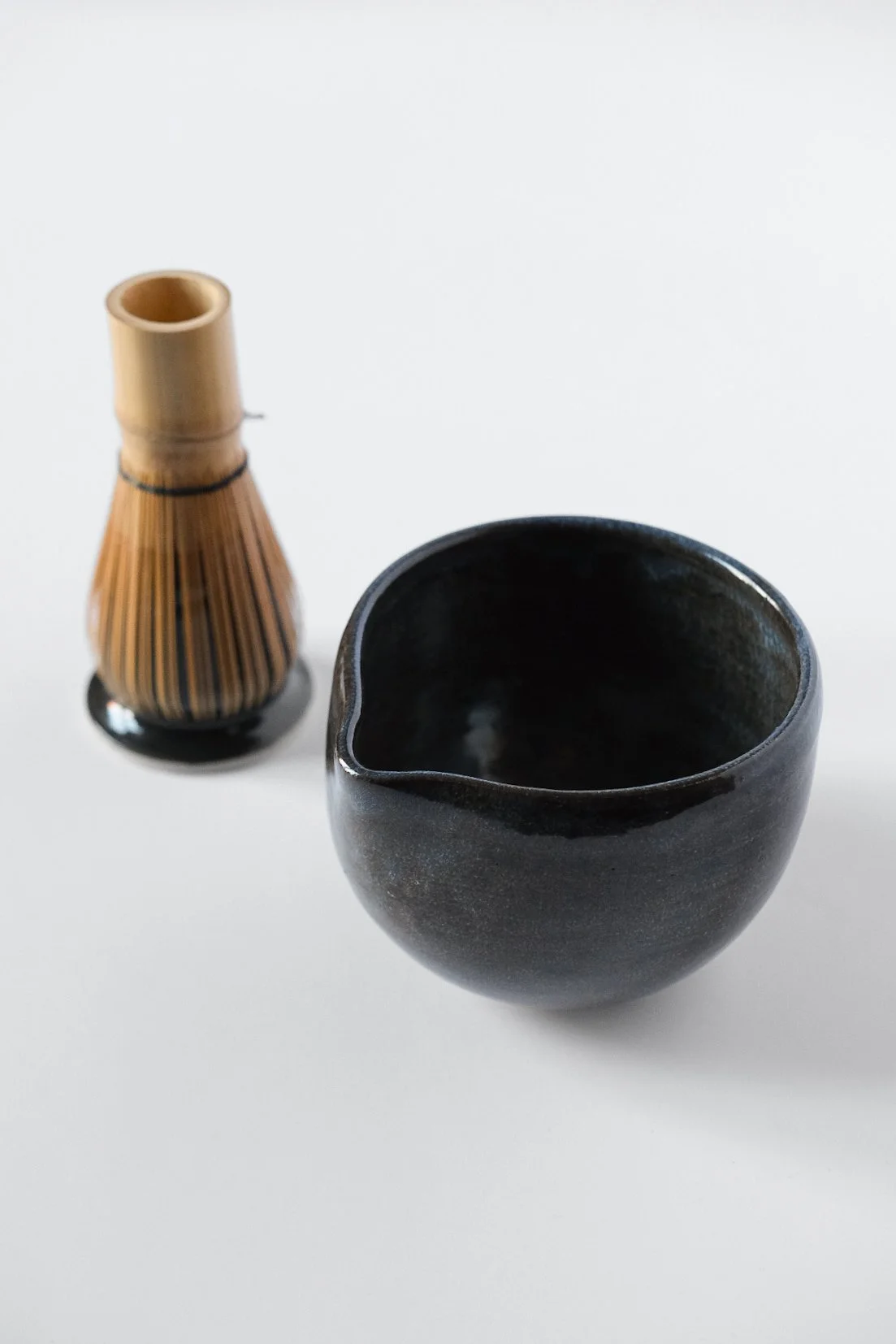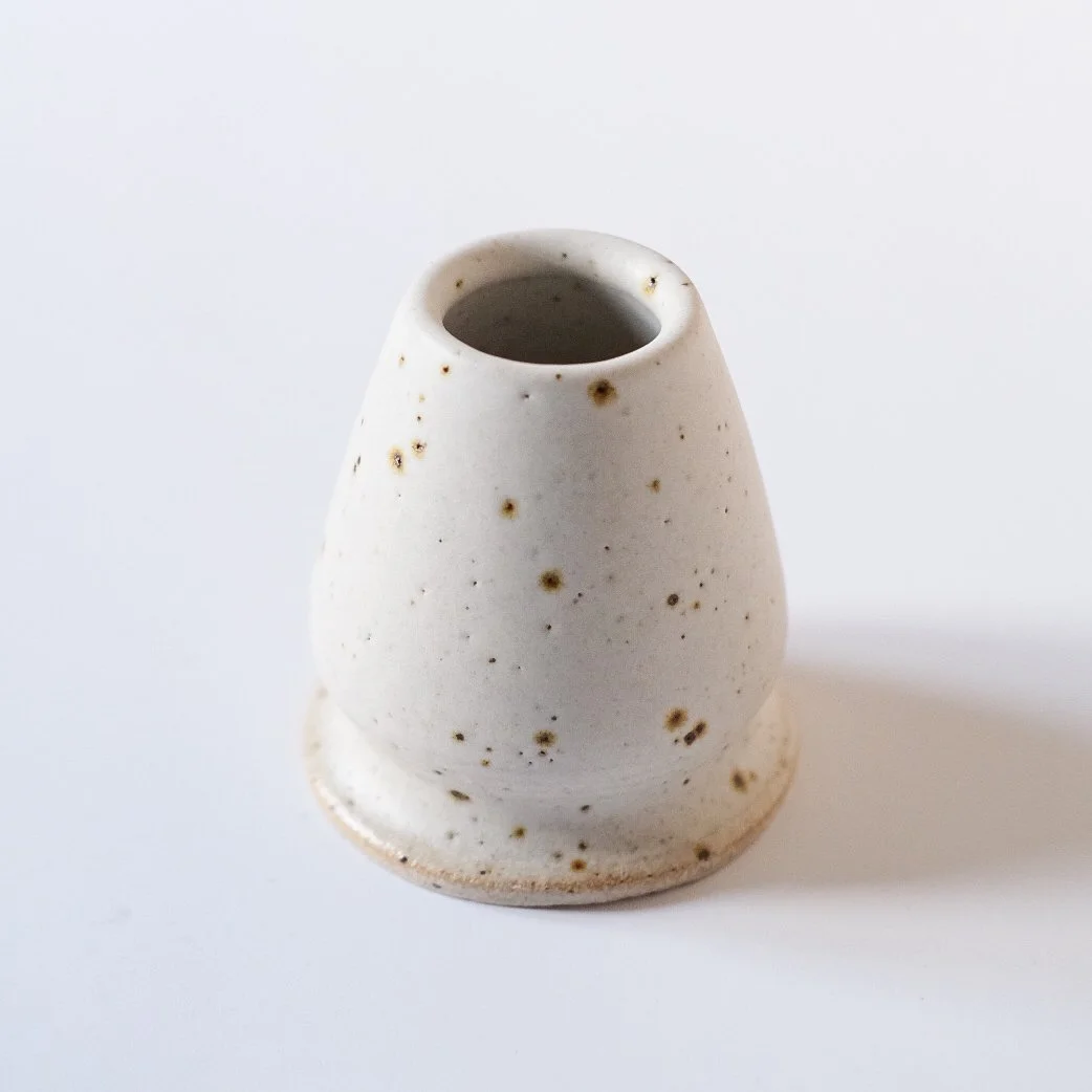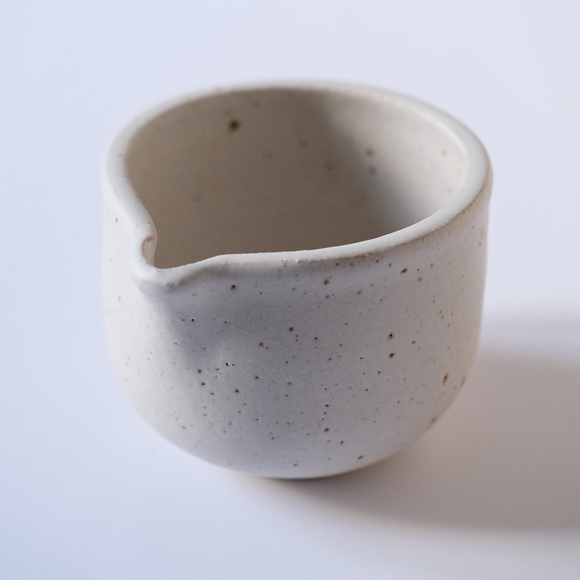 White matte glaze, on flecked stoneware clay showcasing the fleck of the clay. All measurements and volumes are approximate, and given the handmade nature of the matcha bowl, some variations may exist from the item in the picture. Handwash is recommended.