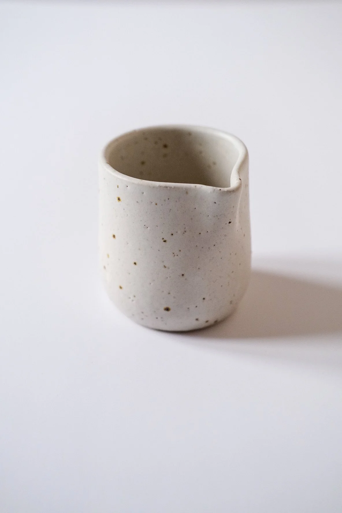 White matte glaze, on flecked stoneware clay showcasing the fleck of the clay. All measurements are approximate and given the handmade nature of the dippy plate some variations may exist from the item in the picture. Handwash is recommended.